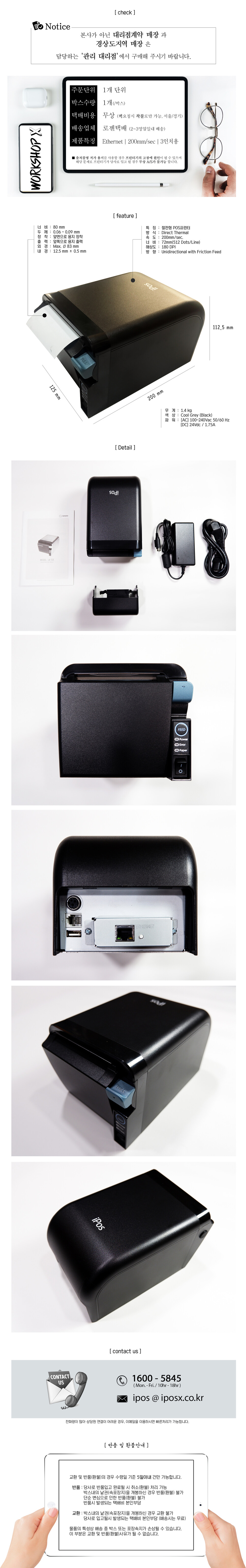 iPOS 전용프린터 ㅣ 네트워크방식(유선LAN) ㅣ 3인치 용지전용